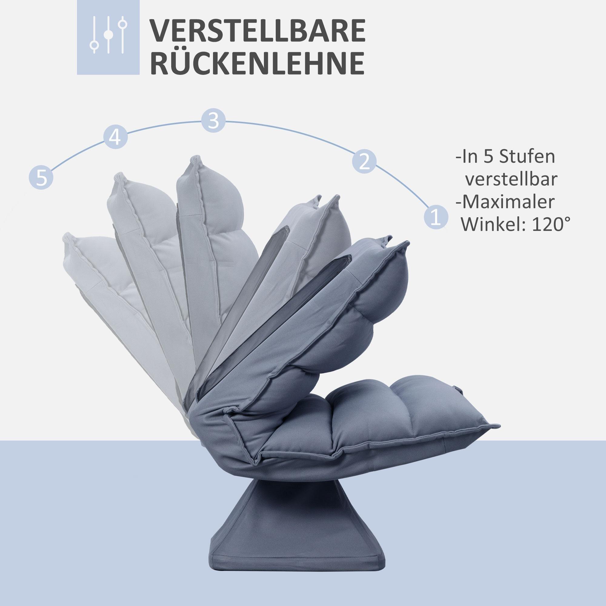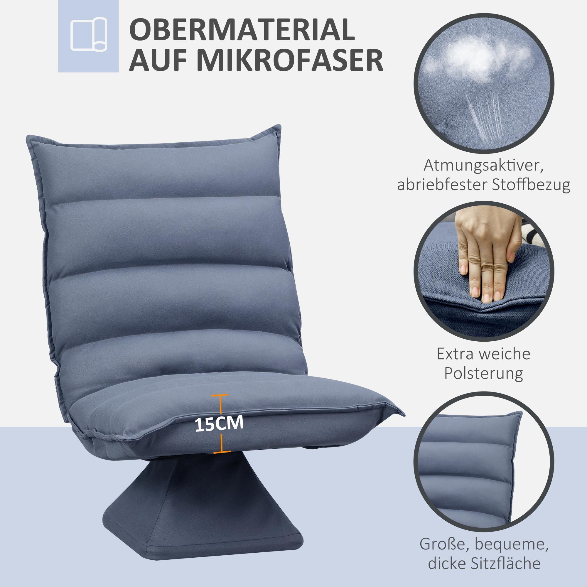 Denna underbara golvsittkudde visar hur enkel estetik kan kombineras med enastående bekvämlighet för att avsluta vardagen mysigt med en varm kopp te. Den breda sitsen och den mjuka stoppningen med ett ventilerande mikrofiberöverdrag ger optimal sittkomfort. Det justerbara ryggstödet kan lutas upp till 120° och golvstolen kan vridas 360°, så att du snabbt hittar den perfekta sittpositionen.
