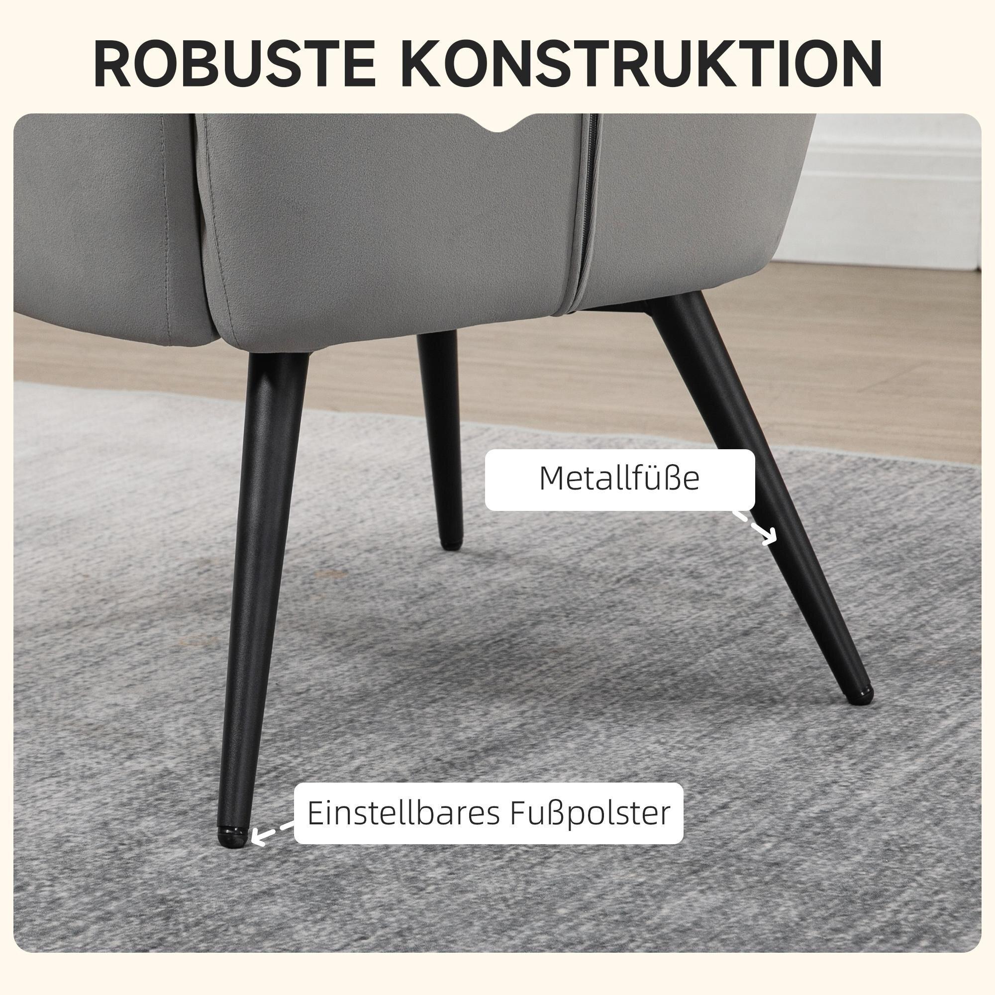 Detta -fåtöljset inkluderar en stor fåtölj och en fotpall, så du kan slappna av i kroppen samtidigt som du vilar benen. I en avslappnad och modern form erbjuder relaxfåtöljen gott om plats att luta sig tillbaka, med en vadderad sits för komfort och ett högt ryggstöd för stöd. Den sammetslena klädseln bidrar till komforten och kompletteras av de slanka benen för en lyxig look.